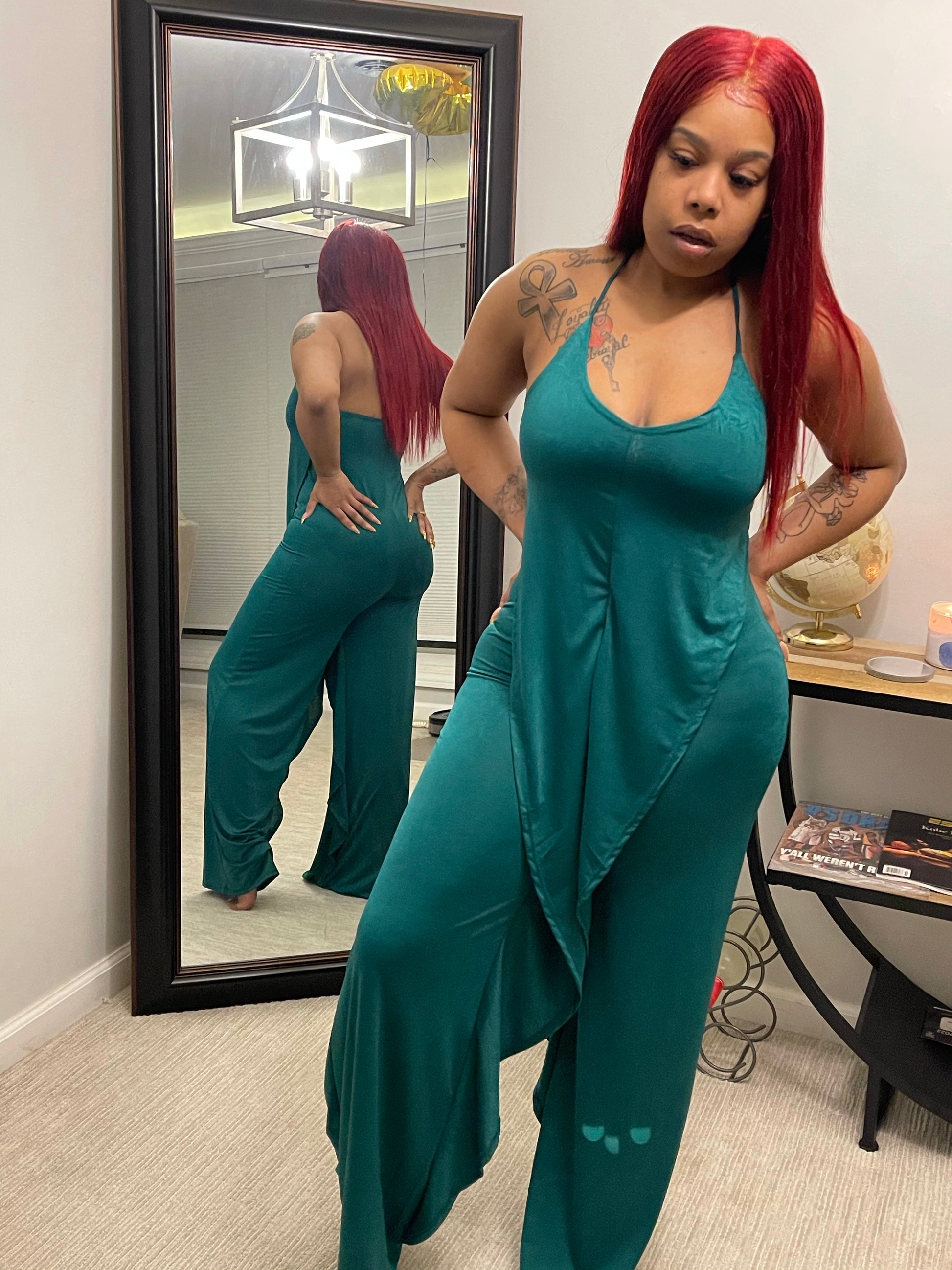 Model is wearing a size small very stretchy.