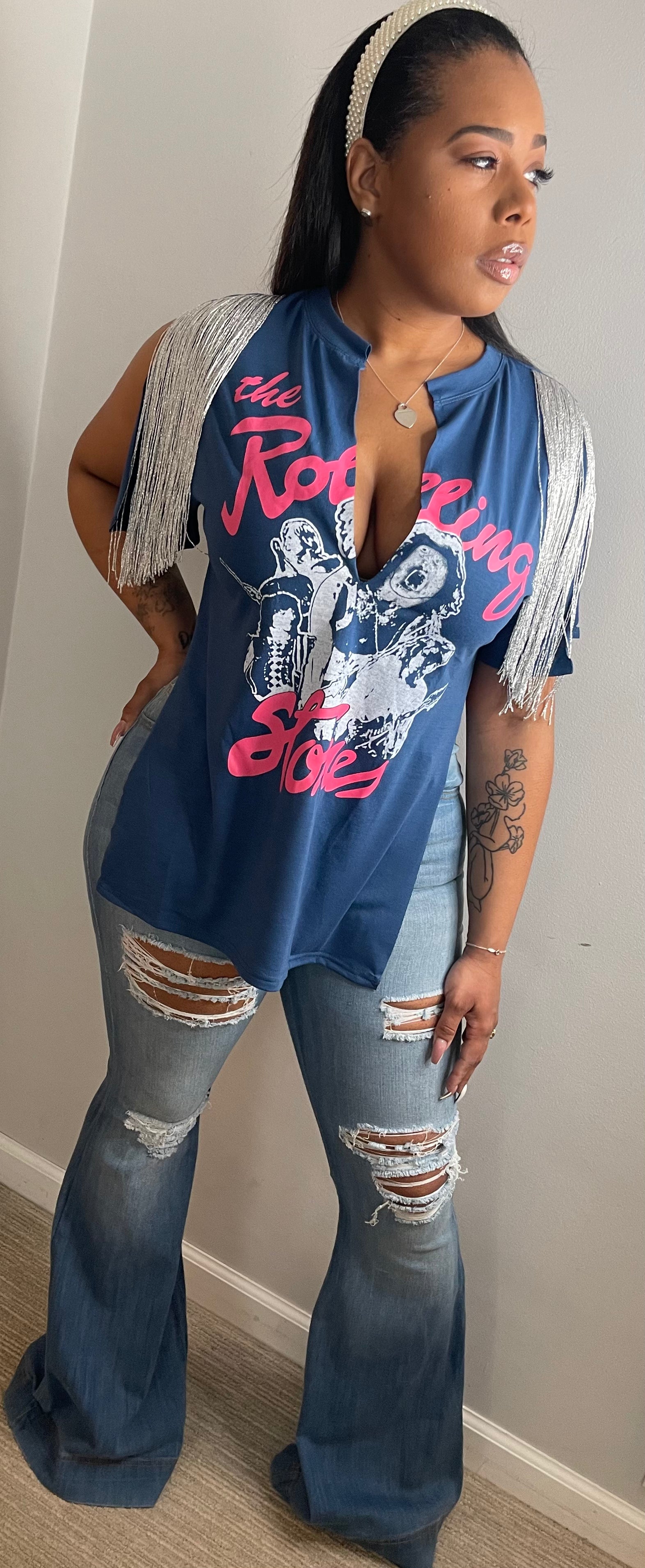 Model wearing a size small. Pair this with our La’flare Jeans to complete this look.